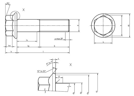 ISO 15072 Hexagon bolts with flange with metric fine pitch thread
