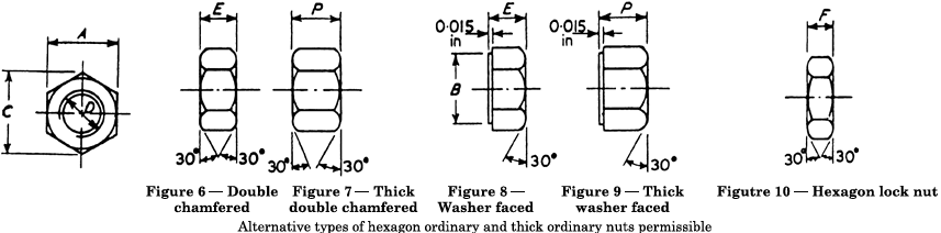 NOTE: In the case of the 7/16 in and 9/16 in nuts, the width across flats is 1/16 in larger than that of the corresponding bolt heads. This is in accordance with the American Standards from which these sizes are derived. a To be dispensed with wherever possible. b When nuts from 1/4 in to 1 in nominal size are hot forged, the tolerance on width across flats shall be two and a half times the tolerance shown in the table. |